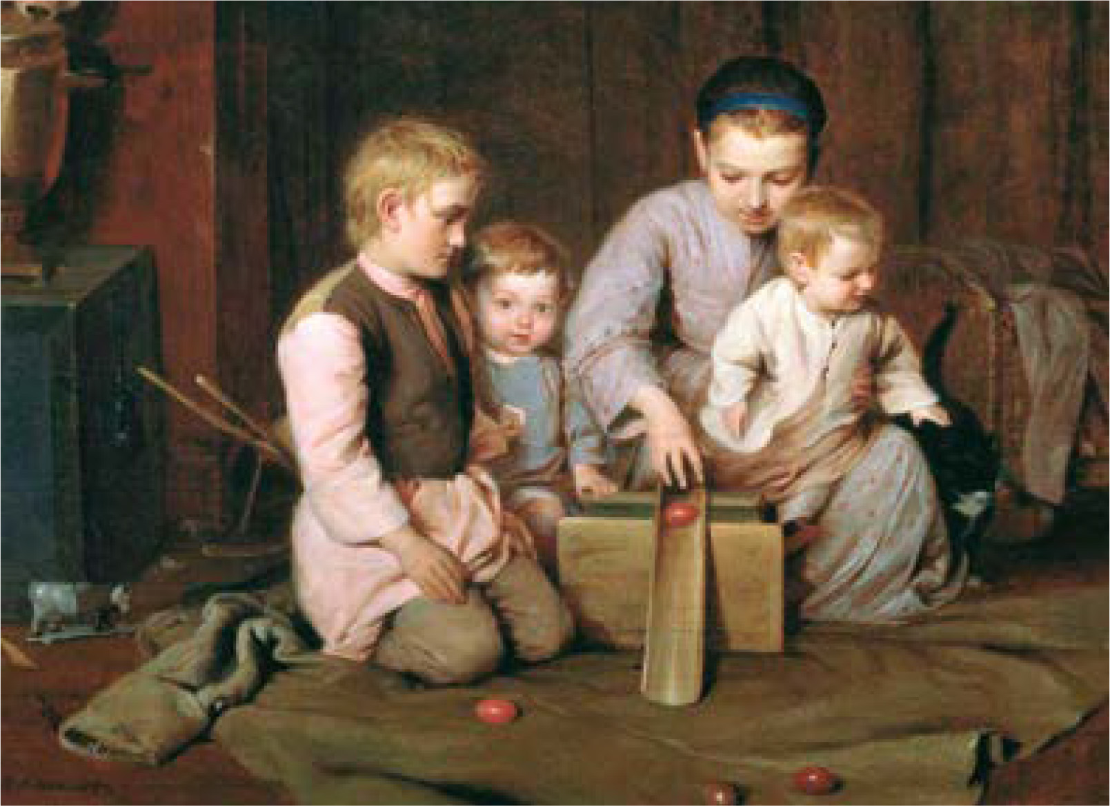 Николай Андреевич Кошелев (1840–1918). Дети, катающие пасхальные яйца. 1855 г. Холст, масло. Русский музей, Санкт-Петербург.