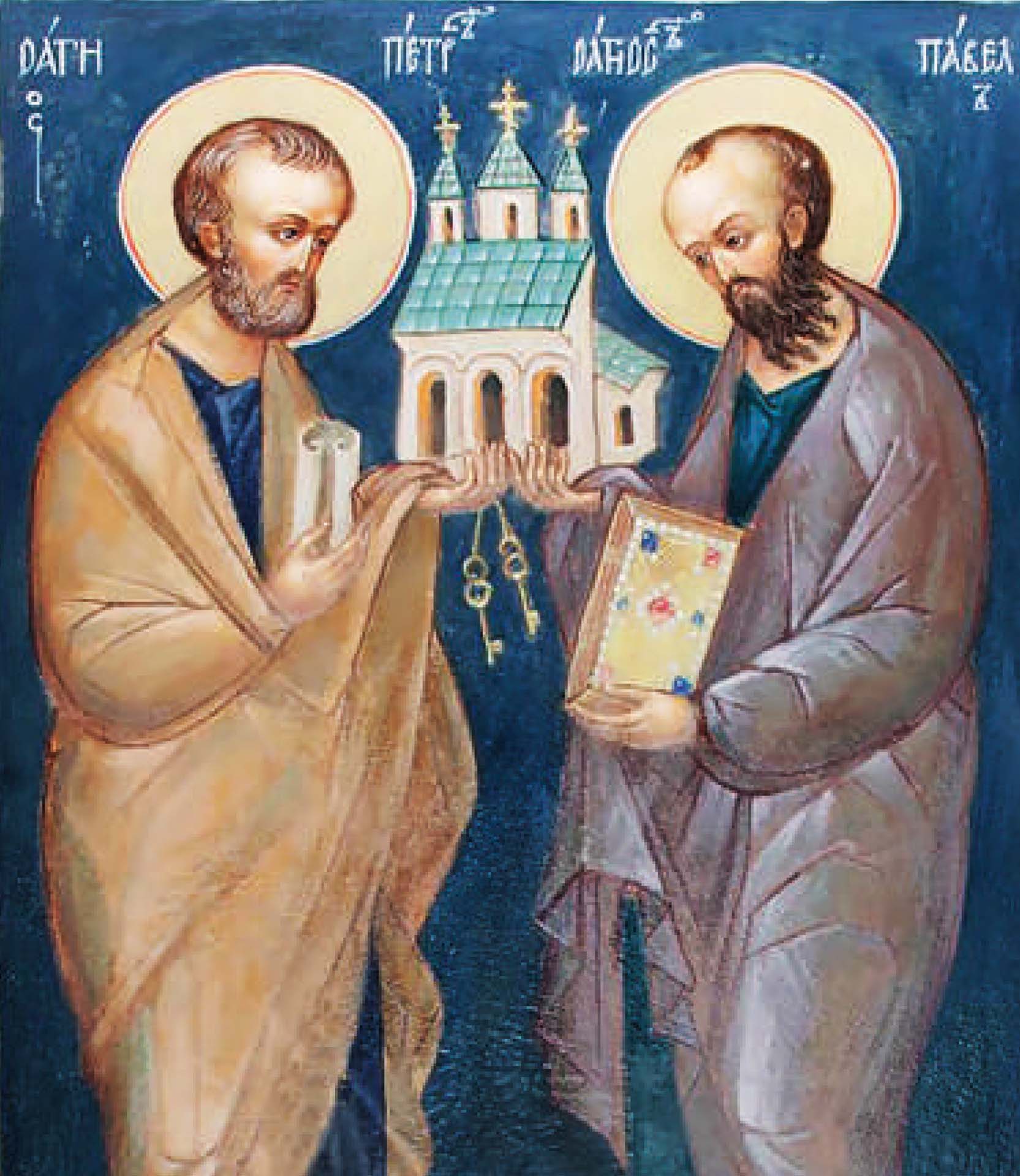Апостолы Петр и Павел были призваны на служение Иисусу Христу по-разному, но окончили свою жизнь оба мученически – в один день апостол Петр был распят вниз головой на кресте, а Павел – обезглавлен мечом.