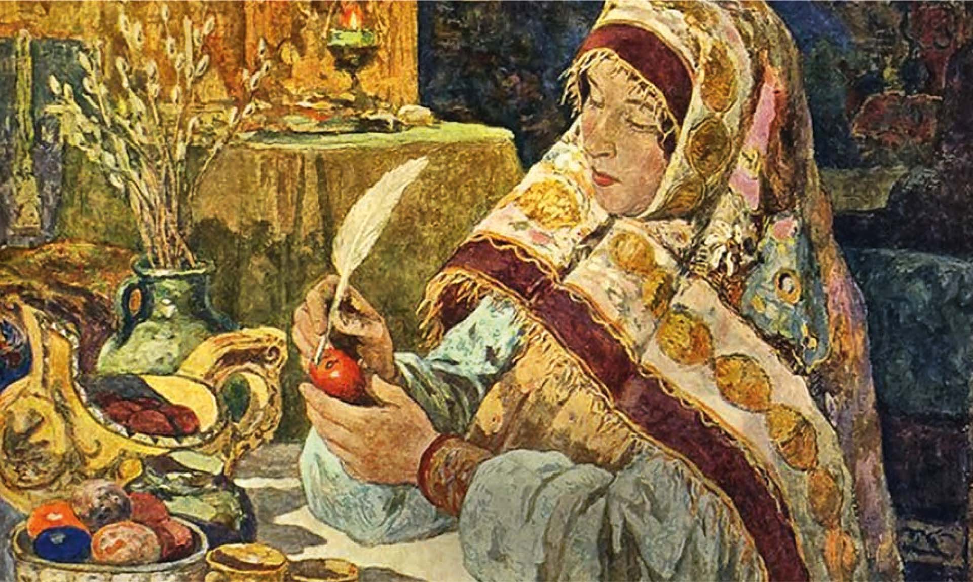 Традиция красить яйца на Пасху очень древняя. Напомним библейскую притчу: Мария Магдалина принесла императору Тиберию яйцо с приветствием «Христос Воскресе!». Тиберий усомнился и сказал, что как яйцо не может из белого стать красным, так и мертвые не воскресают, – и яйцо тут же покраснело кровью Спасителя, которую он отдал за людей. Впечатленный кесарь после этого крестился, а крашеные яйца стали непременной принадлежностью пасхального разговения. Есть и бытовая версия: яйца варили, чтобы они дольше сохранились до окончания поста. А для отличия сырых от вареных – их красили.