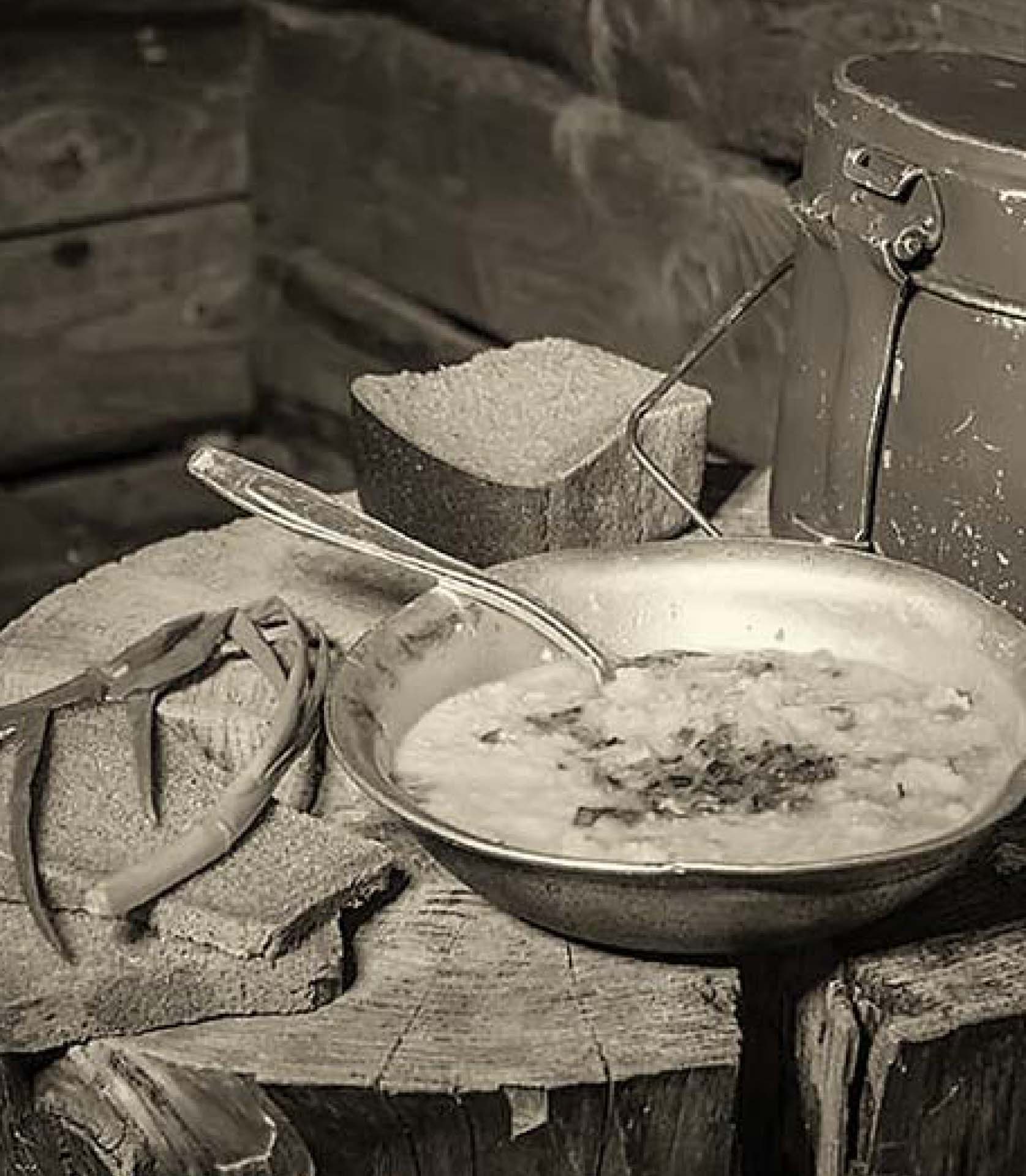 Война войной, а обед по расписанию. Впрочем, «обед по расписанию» был вовсе не гарантирован. Растопить печку и приготовить еду – дело трех-четырех часов, а значит, повара жили иногда и по более жесткому графику, чем фронтовики-окопники. Повара старались сделать все возможное, чтобы вовремя накормить голодных солдат. Как говорится, на голодный желудок сильно не повоюешь. Готовить приходилось и ночью, и буквально под обстрелом. И не только готовить, а еще и доставлять пищу в термосах солдатам на передовую. Обычно горячее питание доставляли дважды в день – до рассвета и после заката (так было безопаснее).