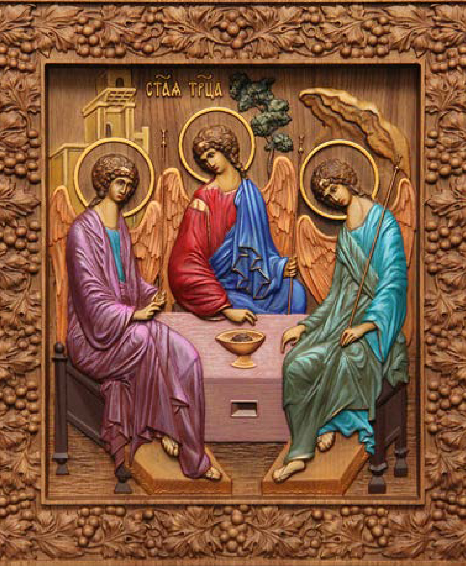 Один из двенадцати главных православных праздников. Символизирует святую Троицу, три ипостаси Всевышнего – в виде Бога-Отца, Бога-Сына и Бога-Святого Духа.